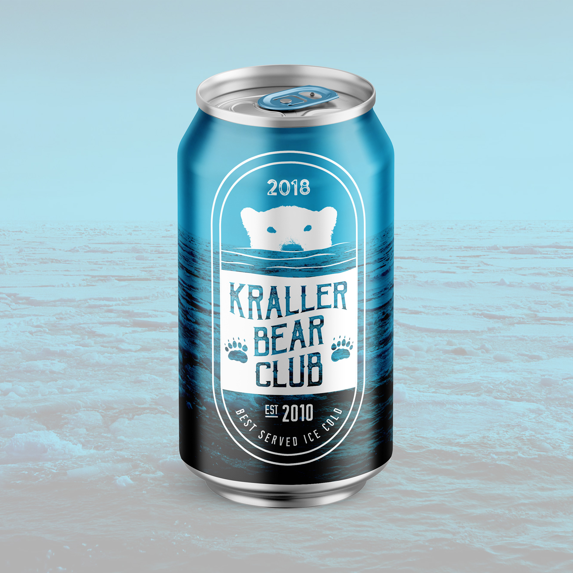 Beer can design for our annual New Year’s Day ritual, Kraller Bear Club - the Krall family polar bear swim!